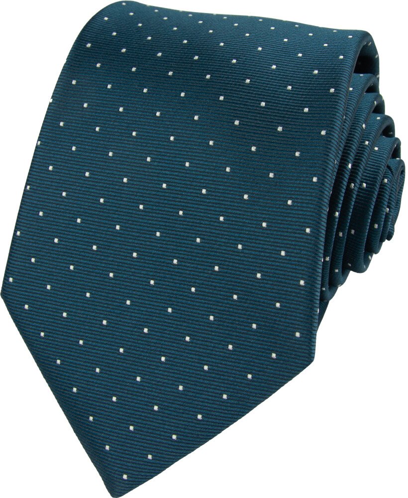 Decentní a svěží doplněk – petrolejová kravata s bílými puntíky kombinuje moderní odstín s nadčasovým vzorem. Je ideální pro muže, kteří chtějí oživit formální outfit elegantním, ale lehce hravým detailem.