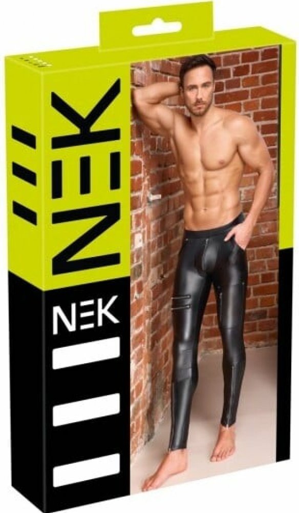 Pánské kalhoty NEK vynikají skvělým provedením a designem, který vás přenese z běžného dne do světa módy a originality. Vyrobeny jsou z černého matného materiálu (90 % polyester, 10 % elastan), který je strečový a pohodlný na nošení. Kalhoty mají vpředu vycpaný zip a dvě přední kapsy, další kapsa je umístěna na stehně a zdobí ji efektivní zipy. Dolní část nohavic je opatřena zipy, které lze rozepn...