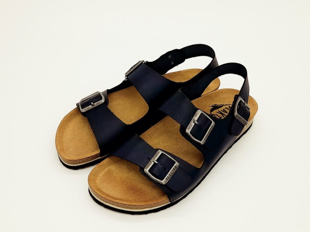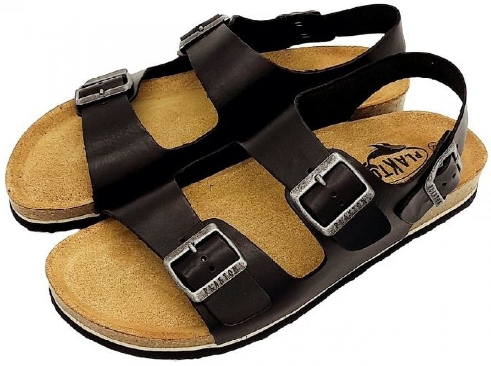 Anatomicky tvarované černé pánské kožené sandály. Kožená je i stélka.