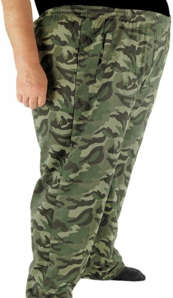 Popis: Pánské maskáčové tepláky pro pořádné chlapy. Tepláky vyrobeny z většinového podílu bavlny 65% z počesaného úpletu z vnitřní strany. V pase guma a šňůrka na utahování. Po obou stranách kapsy. Spodní část tepláků je volná, bez stahovacího patentu. Jednoduché tepláky nadměrné velikosti vhodné jako domácí oblečení, ale také do přírody, na turistiku, pro rybáře a pod. Praktický a levný dárek pro muže.