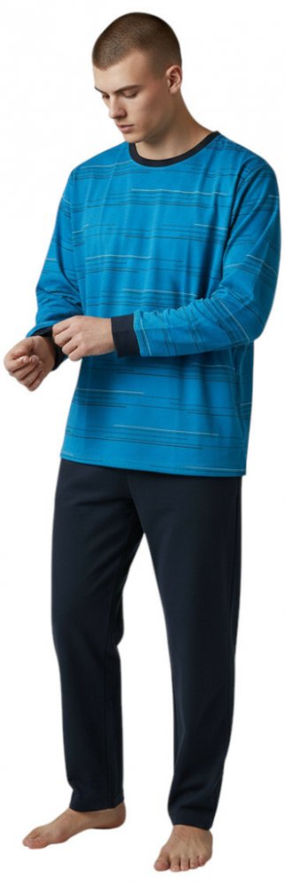Pánské nadměrné bavlněné pyžama s dlouhým rukávem JON tyrkysová