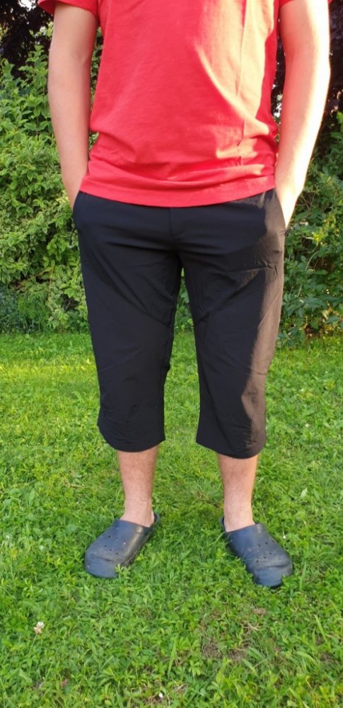 Kalhoty jsou v pásku na bocích z gumou pro regulaci obvodu, knoflík a zip, tak že dobře padnou i při nějakých těch váhových rozptylech. Dále mají poutka na protažení opasku. Dvě zipové kapsy jsou velice praktické a uložené věci v nich budou v bezpečí. Na zadku je jedna zipová kapsa.