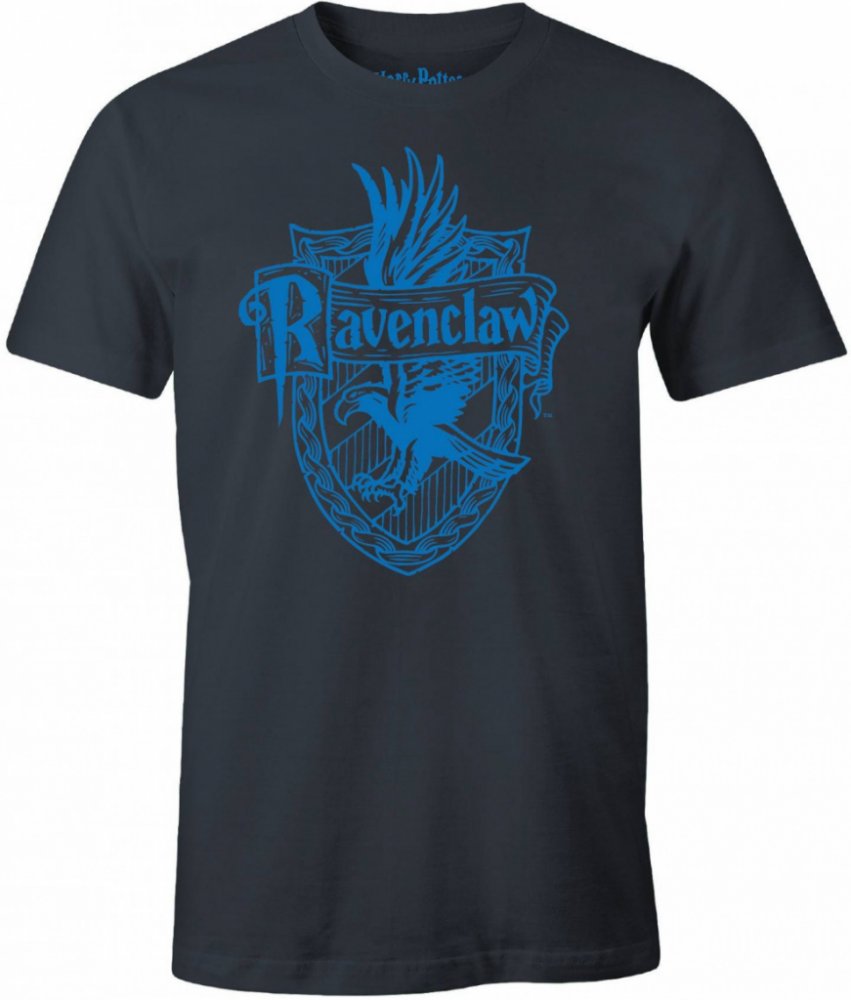 Bavlněné tričko tmavě modré barvy s krátkým rukávem a znakem koleje Havraspáru Školy čar a kouzel v Bradavicích.