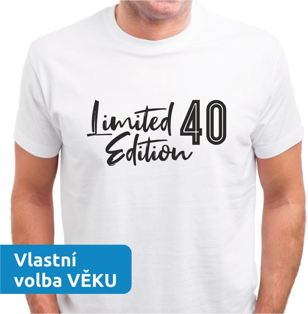 Pánské tričko Limited script VĚK k narozeninám Volba věku: 40 bílá