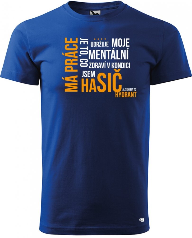 Vtipné pánské tričko s potiskem Má práce hasič - ideální dárek pro vaše blízké. Precizně zpracované tričko od našeho předního výrobce textilu MALFINI®. Tričko je vyrobeno ze 100% bavlny, díky které je velice příjemné na dotek. Ochranná silikonová vrstva prodlužuje životnost celého trička a stálost tvaru. Vysoce kvalitní digitální technologie potisku trička zaručuje výrazné barvy a odolnost vytiště...
