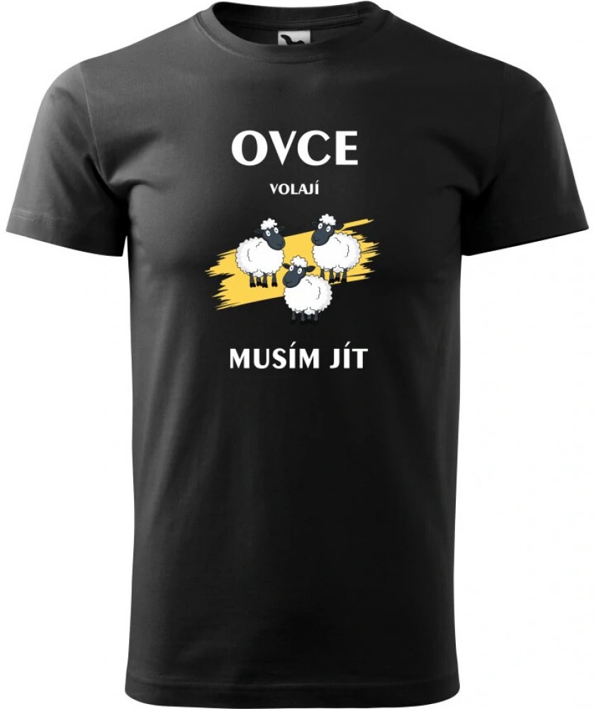 Pánské tričko s potiskem Ovce volají musím jít černá