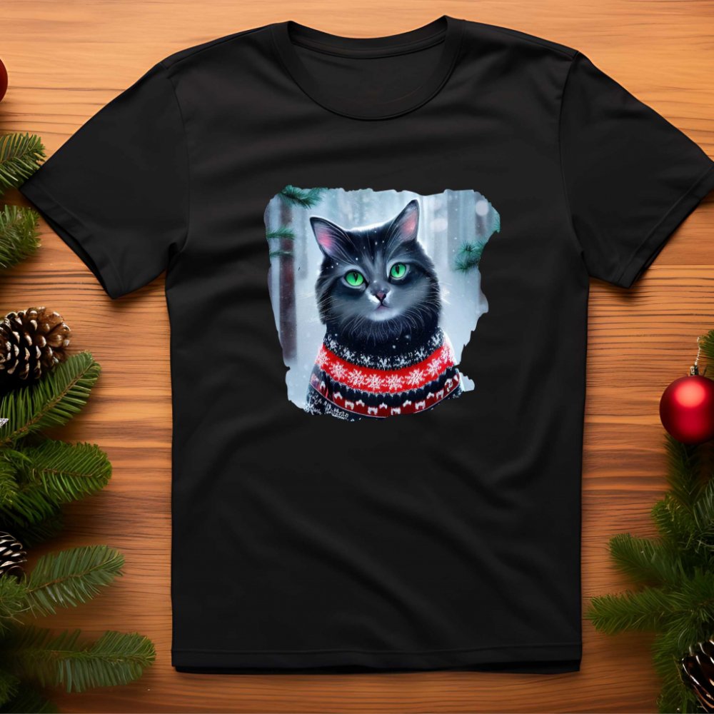 pánské tričko Vánoční motiv kočička bílá
