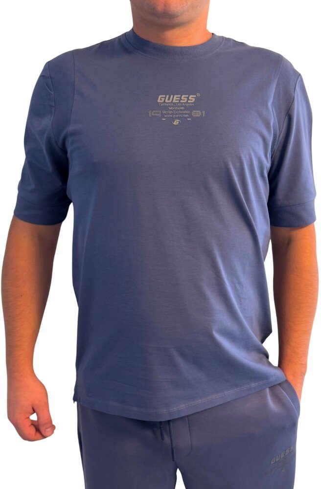 Kvalitní pánské triko Guess z limitované kolekce v pěkné šedo-modré barvě.