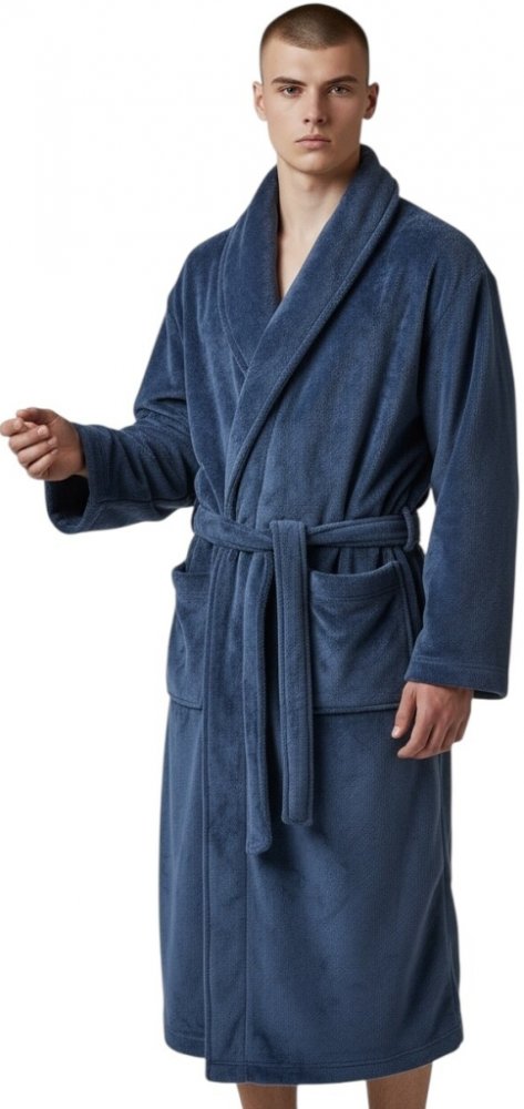 Pánský modrý mikroplyšový župan - symbol pohodlí a elegance pro každodenní relaxaci. Lehký, měkký materiál a stylový design poskytují útulný pocit domova a luxusní vzhled. Ideální pro odpočinek či relaxaci po sprše či večerním posezení.
