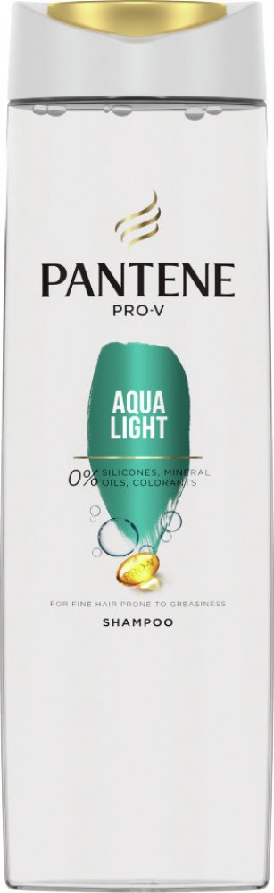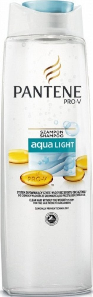 Šampon Pantene Aqua Light s odlehčeným složením Pro-V vyživuje a posiluje každé vlasové vlákno před poškozením způsobeným úpravou a česáním. Pantene Aqua Light s odlehčeným složením. Použití:Vmasírujte do mokrých vlasů a vytvořte pěnu. Opláchněte. Varování:Zamezte