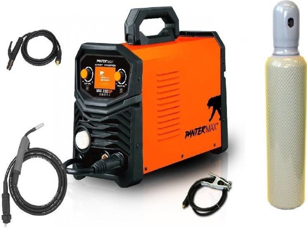 Pantermax MIG 230 DP je plně synergická mikroprocesorová svářečka na svařování metodami CO2 alias MIG / MAG ale umí i svařování obalenou elektrodou, neboli MMA a zvládne i TIG ve variantě takzvaně škrtátko, tedy TIGlift, jinak řečeno náškrabem. Nemá HF TIG zapalování. Nutný ruční TIG hořák s ventilkem. Svářečka je IGBT - invertorový zdroj řízený 32-bitovým procesorem a velkým barevným LCD displejem v hezkém rozlišení. Svářečka Pantermax 230 umožňuje svařování metodou MIG / MAG s plnými dráty v ochranné atmosféře plynu. Tato svářečka však umožňuje použít i trubičkový drát s ochranným plynem nebo i bez ochranného plynu. Grafické rozhraní LCD displeje a zejména synergie, tedy takzvaně inteligentně automatické doplnění svařovacích parametrů ve zdroji usnadňuje její použití a umožňuje použit svářečku i lidem s minimálními zkušenostmi se svářením. IGBT technologie použita u výroby svářečky umožňuje významné snížení hmotnosti a rozměrů stroje a zvýšení účinnosti svářečky i při snížení spotřeby elektrické energie. Opravdu moderní svářečka pro každého kutila či běžnou údržbu.