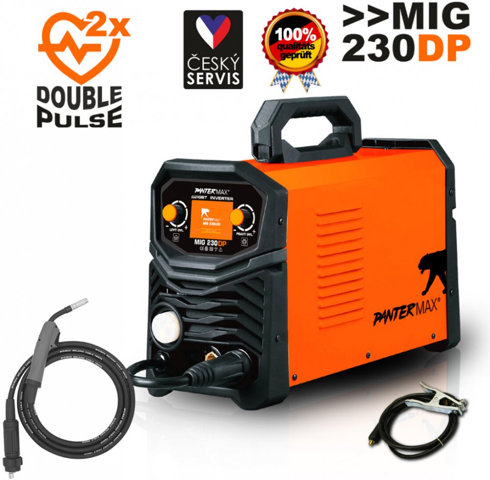 PANTERMAX® MIG 230DP je synergický mikroprocesorový svařovací zdroj pro svařování MIG (Zkrat/Pulse/Double pulse), TIG lift a pro svařování MMA (s obalenými elektrodami). Svařování s profesionální svarovou housenkou bez nutnosti čištění a oklepávají strusky ze svaru nikdy nebylo snazší. LCD grafické rozhraní umožni jednoduše správné nastavení.