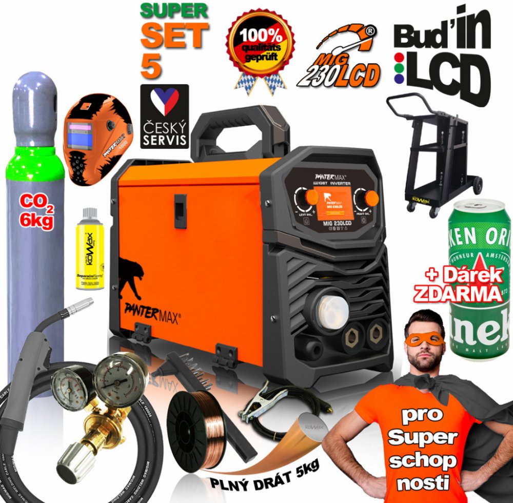 PANTERMAX PanterWeld® 4v1 200 SET 5 MULTIFUNKČNÍ invertorová svářečka MIG/TIG/MMA/PLAZMA + KUKLA + VOZÍK + LAHEV CO2 + SPREJ + DRÁT