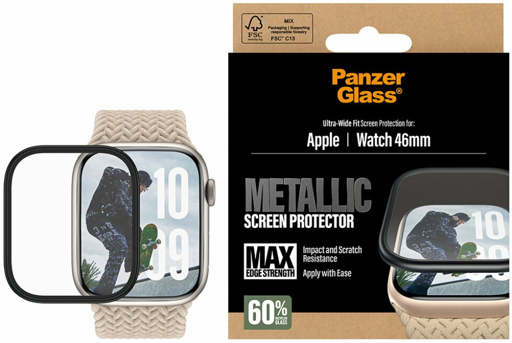 Ochranné sklo PanzerGlass pomáhá předcházet drobným škrábancům na displeji a tlumí nárazy při pádech na zem. Bylo vyrobeno speciálně pro chytré hodinky Apple Watch Series 11 a Watch Series 10. Vlivem tvrdosti 9H skvěle chrání displej zařízení vůči poškození. Vnější povrchová úprava tvrzeného krycího skla snižuje riziko zanechávání otisků. Zaoblení hran je tzv. 3D, dokonale splynou s displejem. Nijak nezhorší dotykové vlastnosti displeje, má lepicí vrstvu po celé ploše. Hlavní vlastnosti produktu PanzerGlass Apple Watch 11/10 46 mm s kovovým rámečkem Ochranné sklo PanzerGlass poskytuje ochranu proti poškrábání a absorbuje nárazy při pádech Je navrženo speciálně pro chytré hodinky Apple Watch Series 11 a Watch Series 10 Je efektivnější a bezpečnější variantou než fólie Aplikace nesnižuje citlivost dotyku K jeho výrobě bylo použito tvrzené sklo Tvrdost skla je 9H Tloušťka ochranného skla PanzerGlass je 0,7 mm Hrany svým 3D zaoblením kopírují displej Lepidlo na celé ploše zaručí dokonalou reakci na dotyk...