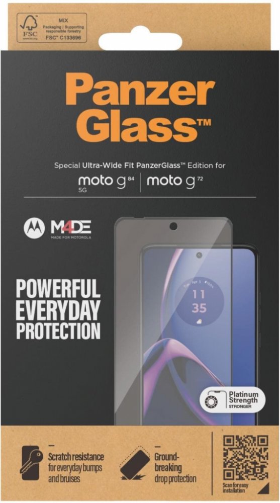 PanzerGlass je nekompromisní a ta nejlepší ochrana displeje Vašeho telefonu • Tloušťka skla 0,4mm • Vysoce kvalitní lepící vrstva pro dokonalé přilnutí k displeji • Velmi snadná instalace a opětovné nalepení až 200x • V balení najdete vše potřebné • Extrémní odolnost skla proti poškrábání • Chrání nejen proti rozbití displeje, ale také proti poškrábání při běžném používání • Sklo nezmění citlivost displeje ani barevné podání • Balení skla je vyrobeno v naprosté většině z recyklovaného papíru