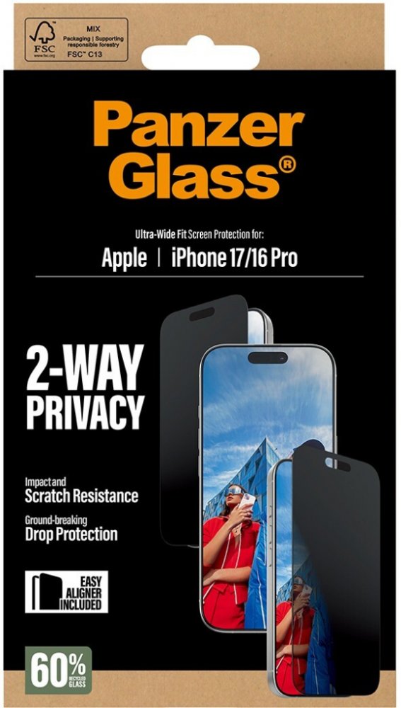PanzerGlass Privacy Apple iPhone 17/16 Pro s instalačním rámečkem PG93414