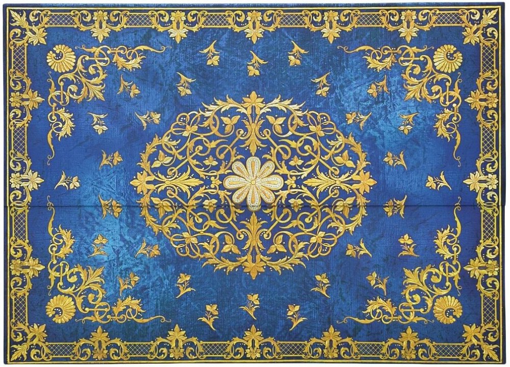 Nádherné desky na dokumenty A4 z nové elegantní edice Hedvábné nebe / Silky Sky od irské firmy Paperblanks.Rozměr: 32,5 x 23,5 cmNádherný design, inspirovaný tradičním židovským svatebním baldachýnem (chuppah), zdobeným kovovou nití na třpytivém modrém pozadí, připomíná nové začátky pod okouzlující noční oblohou. Použití svatebního baldachýnu představuje nový domov, který si pár vybudoval prostřed...