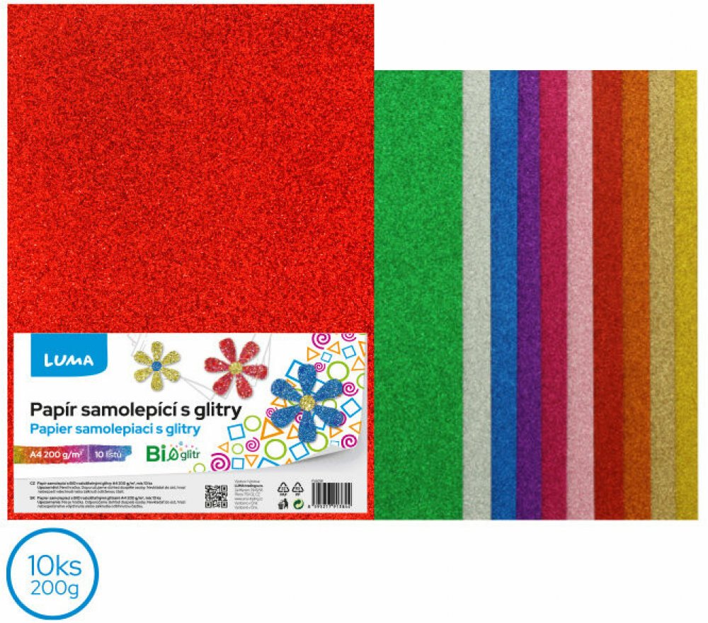 Papír barevný Luma A4, Bio Glitr samolepící, mix 10ks