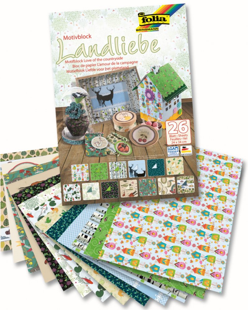 Blok s barevnými papíry s motivem je vhodný k výrobě přání, oznámení, pozvánek, k dekoračním účelům, k výrobě dekorací, krabiček... Blok obsahuje : Celkem 26 listů = 13 listů o gramáži 270 g / m2 a 13 listů o gramáži 80 g / m2, rozměr : 24 x 34 cm, motiv: láska k přírodě. Motiv je pouze z jedné strany, z druhé strany je jednobarevný. Papír je vyroben v Německu. Výrobek je velmi kvalitní je testován na nezávadnost LGA tested.
