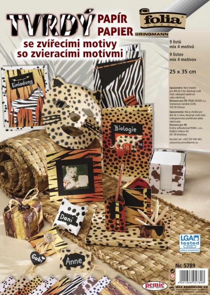 Kreativní papíry, zvířecí motiv, 300 g - 9 listů, mix 4 motivů.