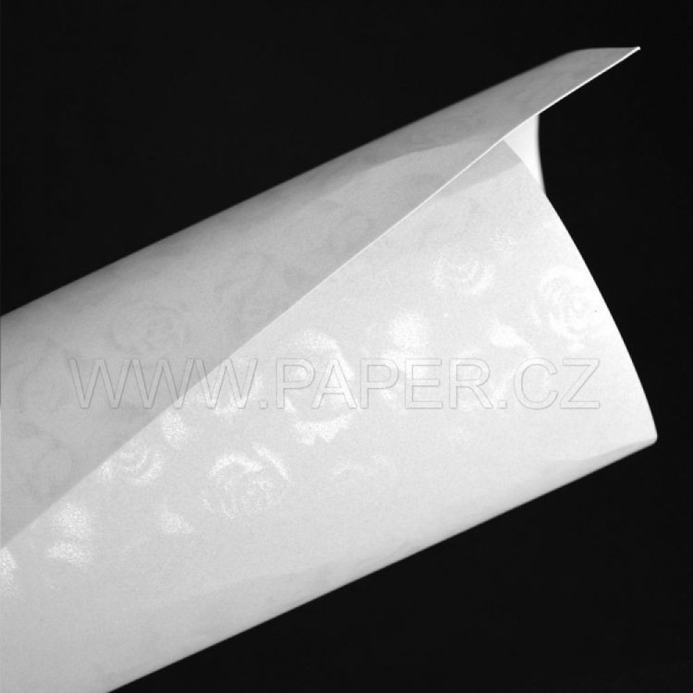 Elegantní metalizovaný karton s jemnou ražbou květin v krémové barvě.