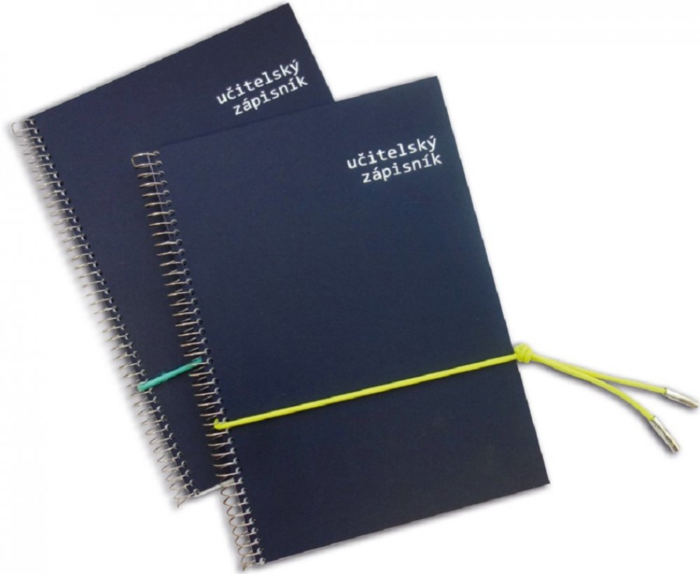 Učitelský zápisník je formát A5. Jedná se o blok s boční spirálovou vazbou, bezdřevý papír 80 g/m2, 54 listů se speciální lineaturou, desky lepenka barvená ve hmotě. Zápisník je opatřen barevnou zdobnou gumičkou.