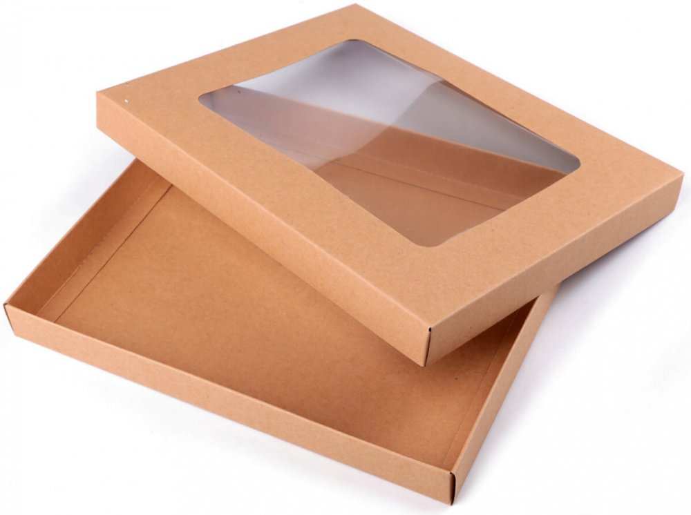 Krabice je vhodná na dárkové balení, je mírně lesklá. Průhled víka krabice je potažen fólii. Dodáváme v rozloženém stavu, skládat dle vyznačených ohybů.Rozměr průhledu je 14 x 19 cm.
