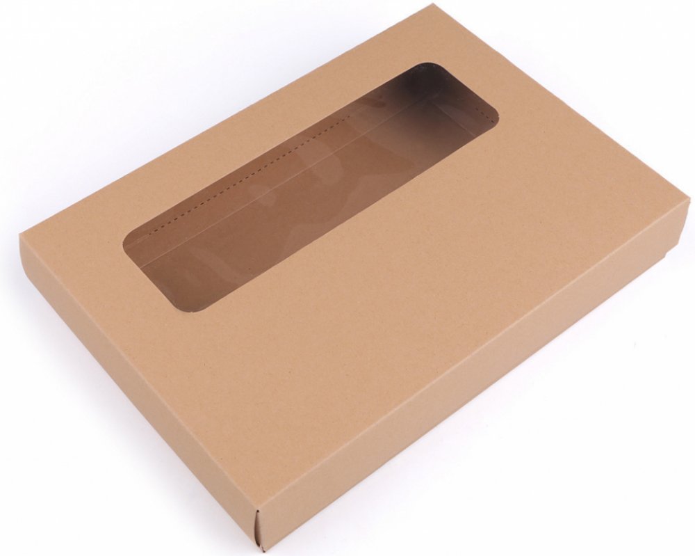 Papírová krabice s průhledem - hnědá přírodní (10 ks)