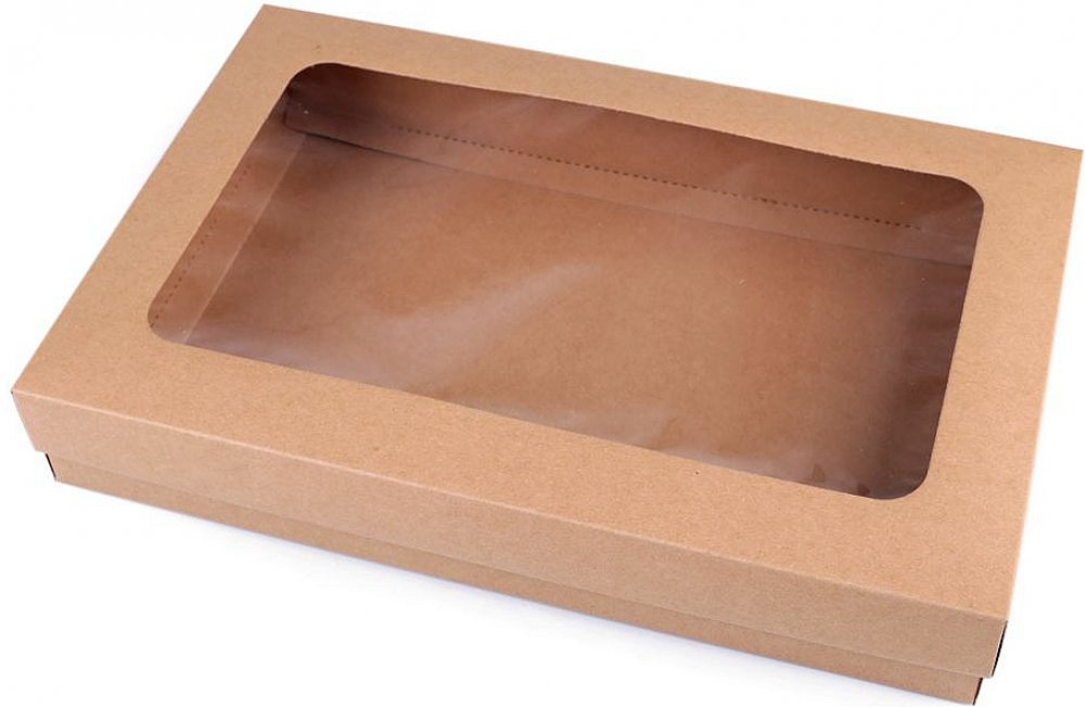 Papírová krabice s průhledem - hnědá přírodní (4 ks)