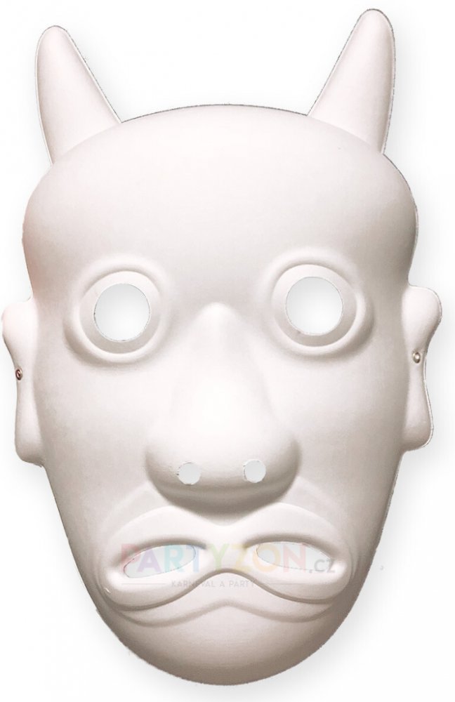 Bílá maska čerta z papíru je vhodnou volbou pro všechny, kdo si svůj převlek chtějí vytvořit dle vlastních představ anebo chtějí do příprav zapojit i děti v rámci kolektivní (školní) práce. Na masku lze kreslit i lepit, takže o zábavu nebude nouze.