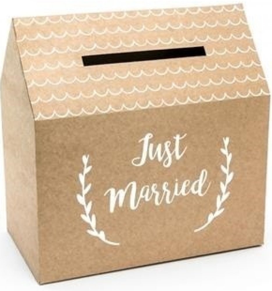 Papírová truhlice na přání Kraft Just Married je ideální způsob, jak uchovat všechna svatební přání a obálky od vašich hostů pohromadě. Díky přírodnímu kraftovému designu působí stylově a univerzálně, takže zapadne do rustikální i elegantní svatební výzdoby.Truhlice je vyrobena z pevného papíru, má otvor na horní straně pro snadné vkládání a její decentní potisk s nápisem „Just Married“ dodává romantický nádech. Po svatbě ji můžete využít jako krásnou památku na tento výjimečný den.
