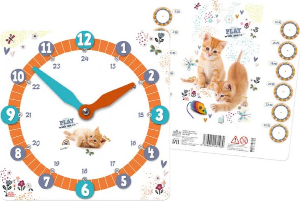 Papírové hodiny, procvičovací, KOŤATA, 21 cm, 1 kus