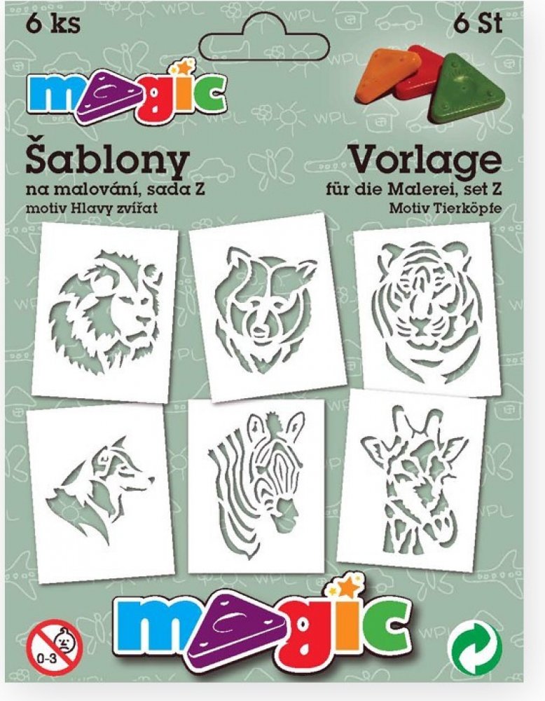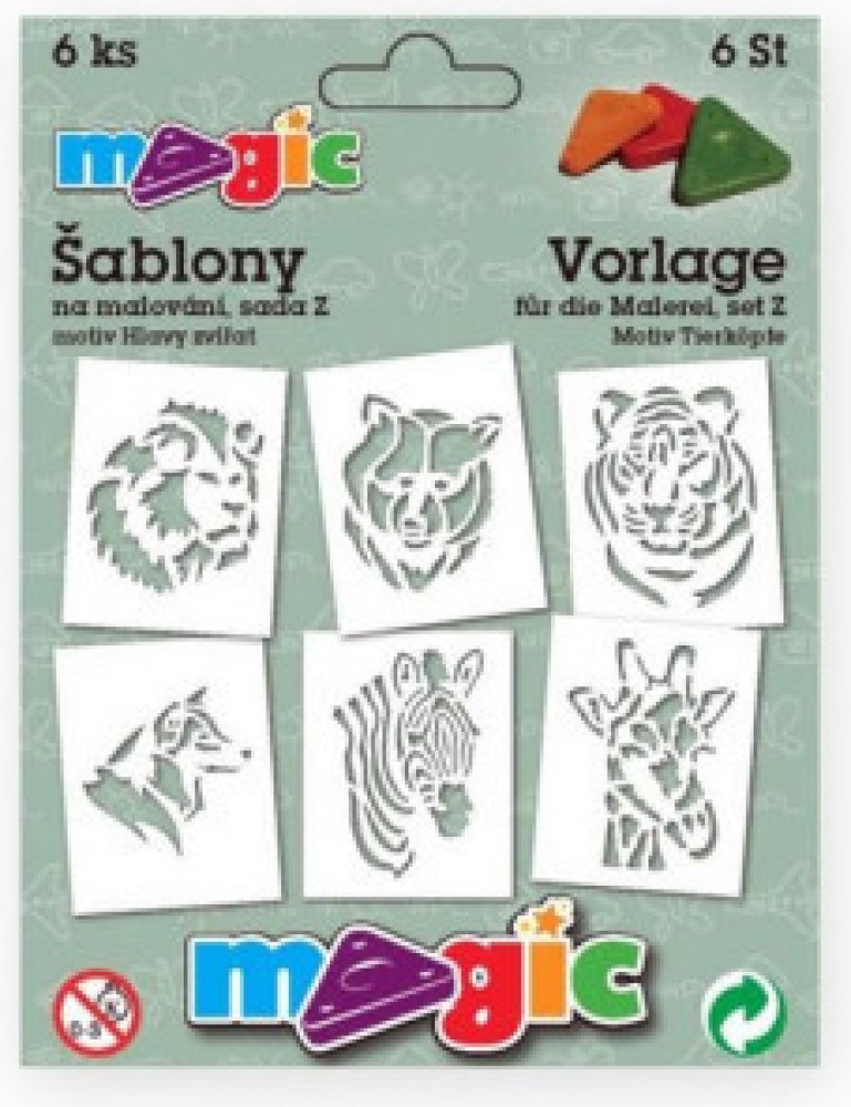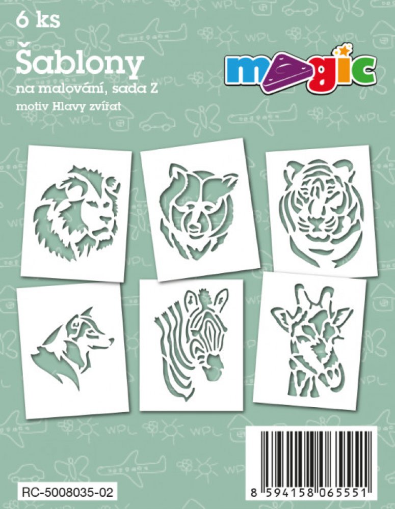 Sada 6 ks papírových šablon na malování s motivem hlavy různých zvířátek.