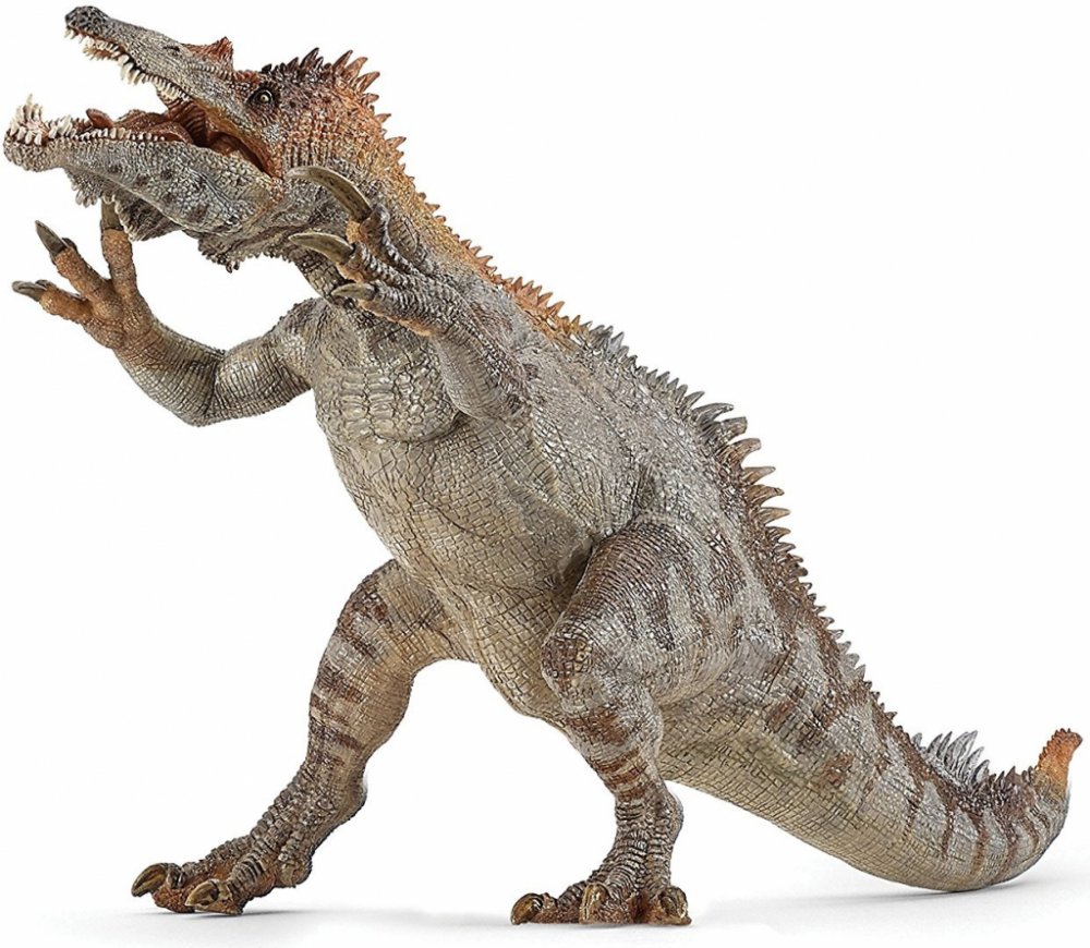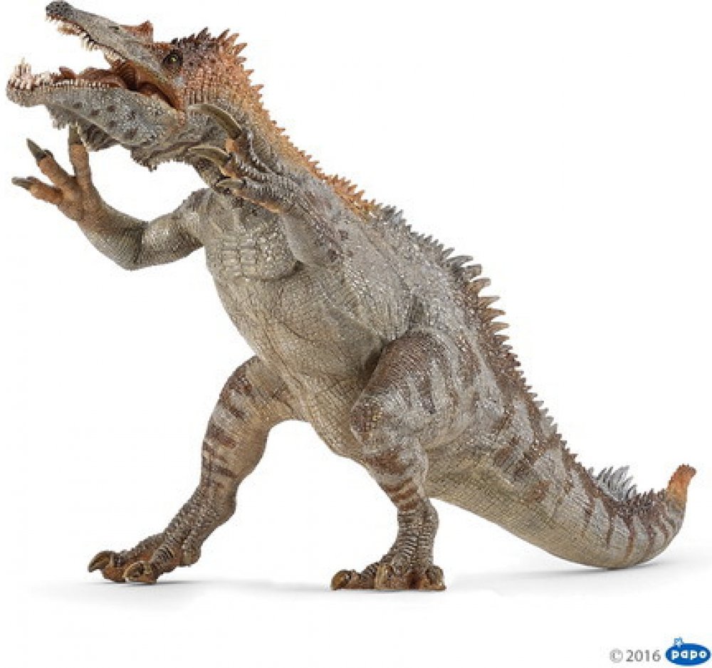 Baryonyx, pozoruhodný svým drsným hřebenem, oranžovým ocasem a velkými drápy, působí opravdu hrozivě. PAPO dokonale vystihl jeho malý roh, dlouhou a úzkou lebku i nozdři umístěné daleko vzadu. Tento masožravec rozhodně nebyl k přehlédnutí. S velkými zoubkovanými zuby mohl probodnout měkkou rybu, kterou chytil svými velkými drápy a dlouhým čenichem, jenž mu umožňoval dýchat pod vodou. Jeho jméno p...