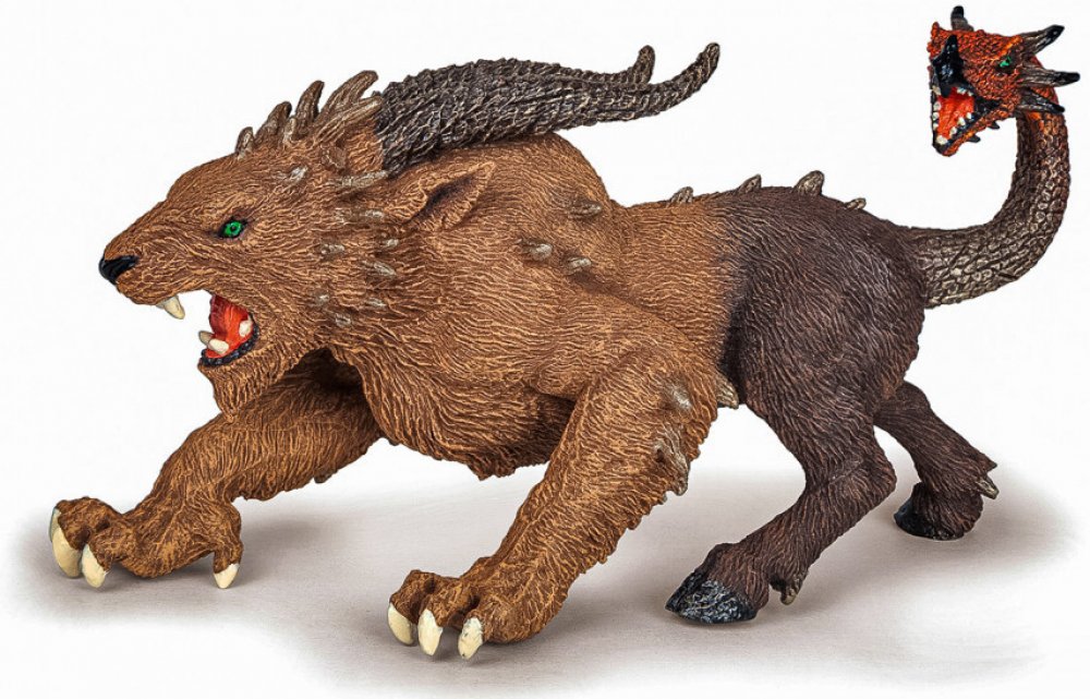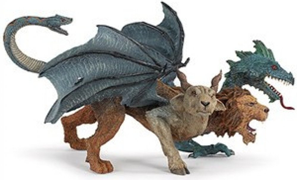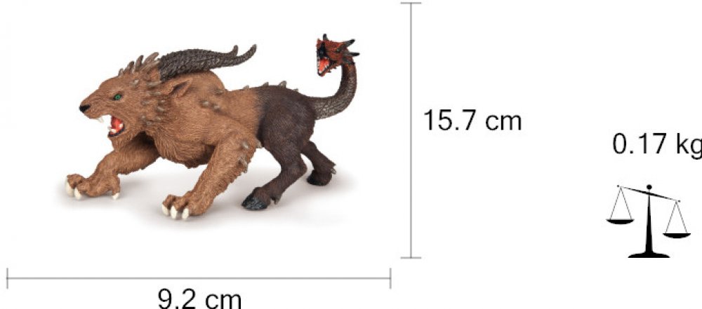 Mytické stvoření Chimera žila podle řeckých bájí v Lykii. Ve starořeckých bájích je to obluda, příšera s částmi těla lva, kozy a draka, která kolem sebe chrlila oheň.Rozměry: 18,4 x 9,5 cm. Vhodné pro děti od 3 let.