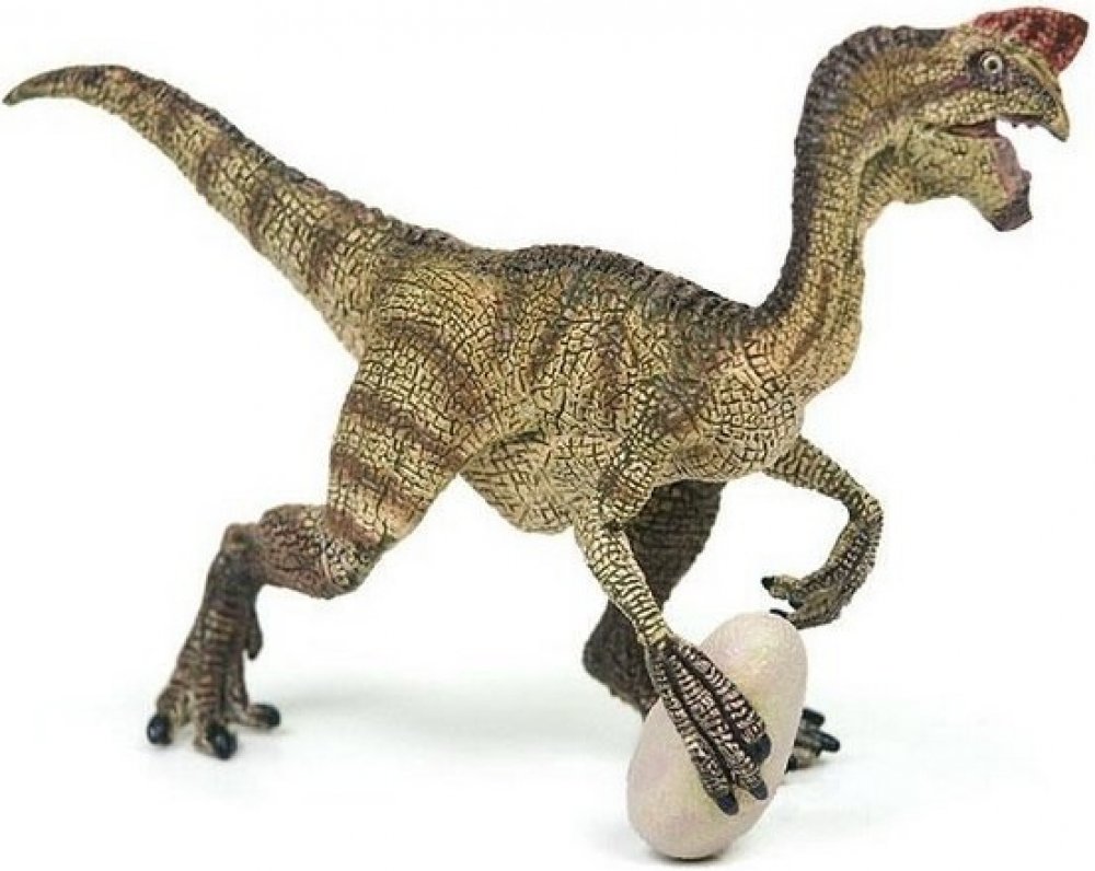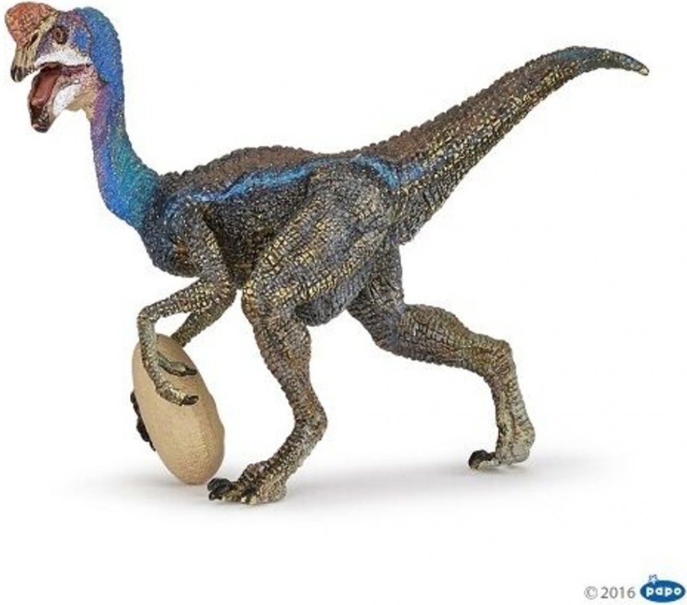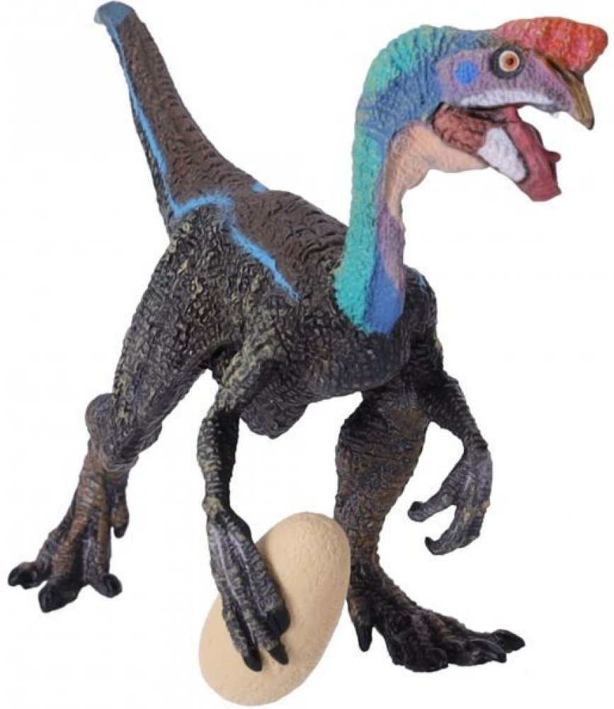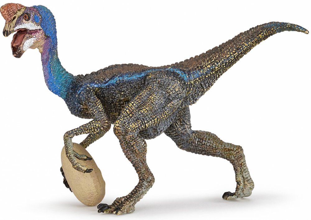Oviraptor, jehož jméno znamená „zloděj vajec“, byl malý dvounohý dinosaurus, který žil v pozdní křídě. Má jít o masožravce a amatérské vejce, které musel rozbít svým bezzubým zobákem. Tento ostražitě vyhlížející dinosaurus byl asi 2,5 metru vysoký a na hlavě měl dlouhý hřeben. Jeho velké oběžné dráhy naznačují ostrý výhled a velkou živost. Zdá se, že tělo bylo celé pokryto peřím. Délka-12 cm, Šířka-4,6 cm, Výška-7,9 cm, Hmotnost-0,035 kg