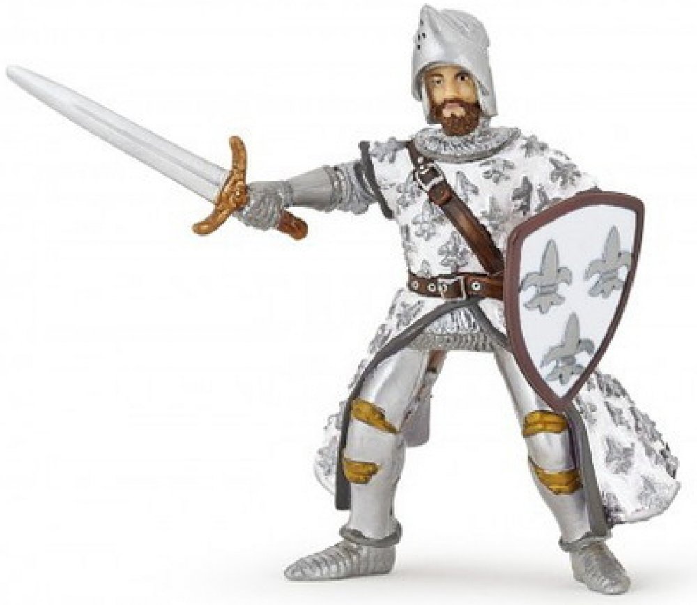 Figurka prince v bílo-stříbrné zbroji.