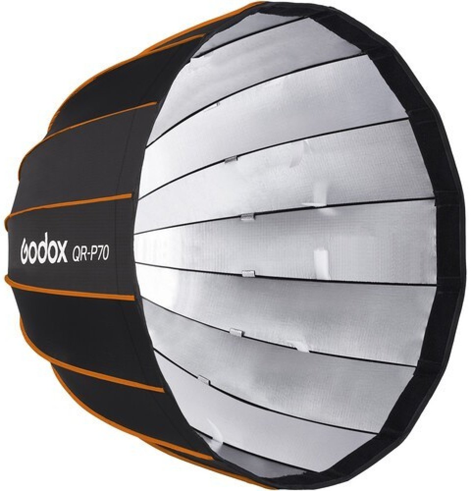 Parabolický šestnácti-boký deep softbox Godox QR-P70 o průměru 70cm s rychlým otevíráním najde své uplatnění zejména v portrétní a fashion fotografii. Poskytuje směrovější světlo než běžný softbox, s lépe definovanými okraji.