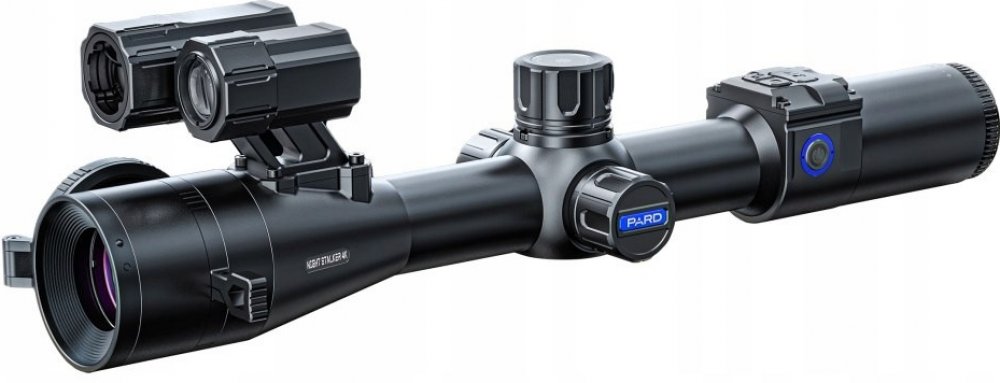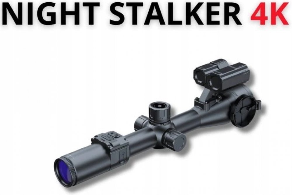 PARD Night Stalker 4k s proměnlivým zvětšením , laserovým dálkoměrem s dosahem 1000 m a balistickým kalkulátorem. Systém den/noc - přes den barevný a v noci černobílý obraz. Rozsah pozorování ve tmě až 350 m. Optické zvětšení 4x, 5,6x nebo 8x. Digitální zoom 2x. Kulatý displej IPS 800x800px. 3 stupně intenzity přísvitu 850nm. Funkce obraz v obraze (PIP). Rozlišení 3840x2160 4K. Paměť až na 5 zbraní. 6 nových loveckých osnov. Úsporný režim (uspání). Napájení na akumulátor typ 18650 (přiložen v balení). Výdrž baterie až 8 hodin. WIFI - APP PardVision2. Mechanická odolnost až 6000 J (až 8x68, 30-06, .308W). IP67. České menu.