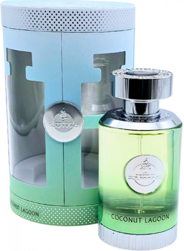 Paris Corner 100 ml unisex parfémované vody kokosové pro denní nošení s celodenní výdrží (4-8h) svěží a energické Coconut Lagoon 2024 ze Spojených arabských emirátů bergamot, citron, mandarinka jablko, karamel, meloun kokos, vanilka se střední projekcí letní kompatibilní s kokosem, s vanilkou, s karamelem Paris Corner klasické TSA kompatibilní (≤100ml) rozprašovač standardní