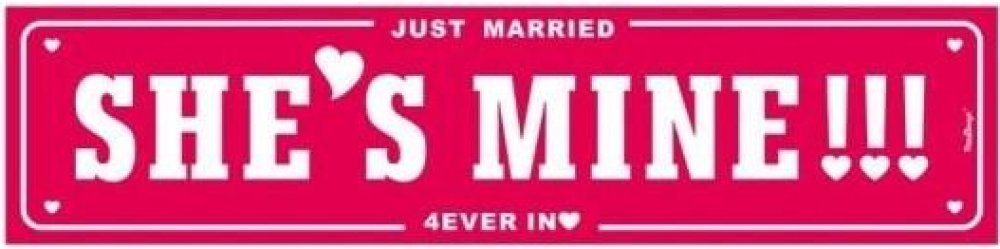 Svatební SPZ na svatební auto "She´s mine!!!". SPZ je vyrobena z tvrdého papíru 50x11,5 cm.
