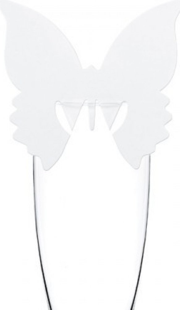 Svatební jmenovky motýl můžete umístit na přípitkovou skleničku.