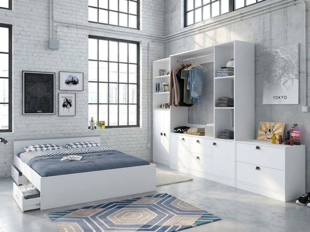 Sestava nábytku do ložnice i studentského pokoje. Nadčasový, velmi praktický návrh pro vybavení vaší ložnice, nebo studentského pokoje dospívajícího školáka. Francouzský výrobce především v tomto návrhu věnoval velkou pozornost dostatečně objemnému úložnému prostoru, kdy součástí stěny je i oblíbená otevřená šatní skříň. Dokonalá volba do rozměrově menších místností s ohledem na minimalistické lin...