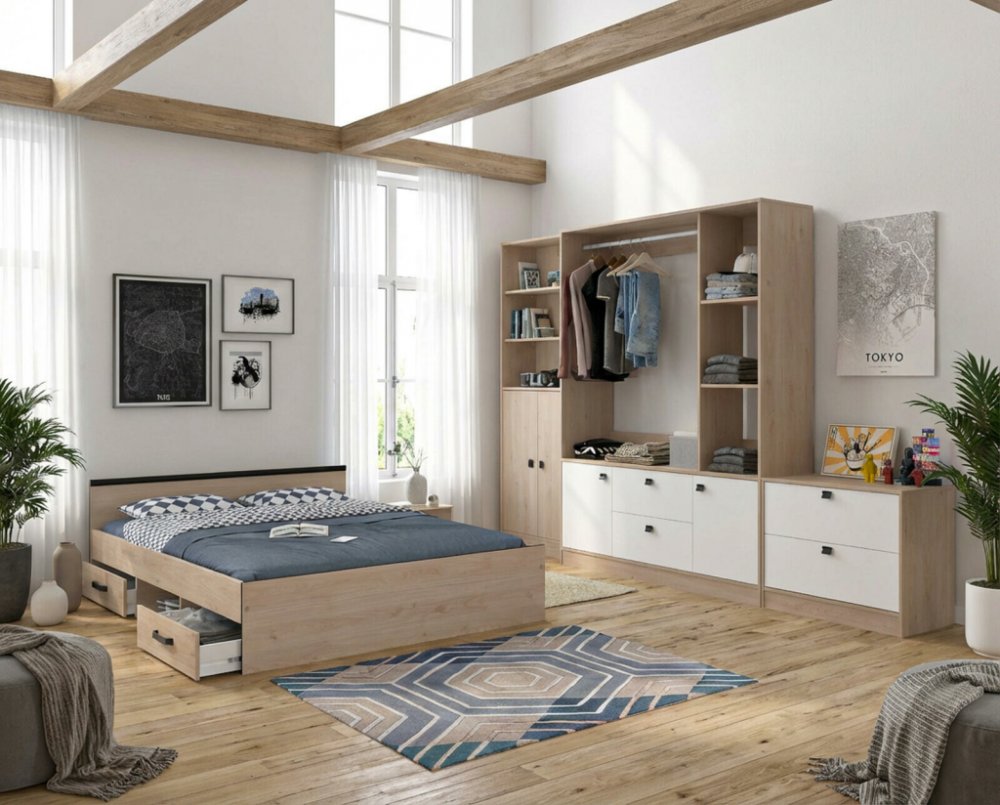 Sestava ložnice Sophia single open oak. Důmyslný design, který navíc s ohledem na objem úložného prostoru a využití minimalistického designu, pořídíte za více než příjemnou cenu. Sestava jako dokonalý návrh pro vybavení ložnice jedné osoby s ohledem na velikost ložné plochy, kterou postel nabízí a samozřejmě, že tento nadčasový návrh lze využít i do studentského pokoje. Slibujeme vám, že dospívající, téměř dospělé dítě, si kolekci nábytku Sophia zamiluje.Všeobecně jsou otevřené šatní skříně u dospívající dětí, ale i dospělých, velmi oblíbené právě pro jejich velký úložný i odkládací prostor a ve srovnání s tradiční šatní skříní také pro jejich dostupnou cenu. Zkrátka otevřené šatní skříně se v posledních letech staly fenoménem moderního, bytového designu. Jejich popularitu jsme tak využili i pro sestavení ložnice. Komfortní postel a otevřená šatní skříň je vše, co byste v ložnici mohli potřebovat.Identický návrh sestavy z dílů kolekce nábytku Sophia vám představujeme rovněž v čistě bílém odstínu, který si bezpochyby rovněž zamilujete. Stejně tak, jako je vám k dispozici identický návrh ložnice, ale s větší postelí, která bude vhodným řešením pro pár. V neposlední řadě, kolekce nábytku Sophia, to je nekonečné množství možností pro vybavení interiéru. Pro váš spokojený nákup vám celou sestavu doručíme našimi vozy bez poškození včetně výnosu zdarma. Kolekce nábytku Sophia, nekonečné množství možnostíVýhradní zastoupení předních evropských výrobců převážně z Francie a ze Španělska, to je pro vás zákazníky rovněž celá řada výhod. Předně máte jistotu, že nakupujete u spolehlivého prodejce, protože získat exkluzivitu pro dané designy není vůbec snadné, ale také máte jistotu, že pořizujete nábytek kvalitní a s certifikací. Ale prvním krokem by především měl být výběr prodejce, u kterého nakoupíte. Přečíst si hodnocení zákazníků, kteří nakoupili před vámi, zabere opravdu jen chvíli, ale ušetří spousty nepříjemných starostí a zklamání z nákupu.Věříme, že ti z vás, kteří zvolí