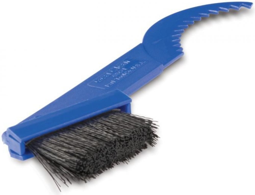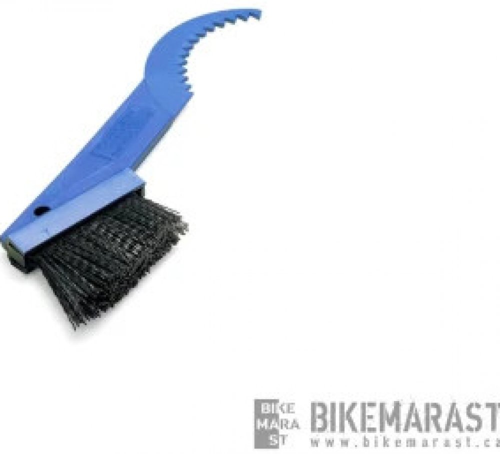 Kartáč s nylonovou rukojetí usnadňuje čištění řetězů, řetězových kol a ozubených kol.