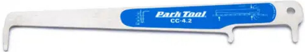 Přesná profesionální měrka k rychlé kontrole opotřebení (prodloužení) řetězu jízdního kola. Odlišný princip měření než u většiny jiných měrek. Poloha prvního doteku je fixována přitlačením válečku řetězu na čep řetězu jako při namáhání řetězu tahem za zuby převodníku/pastorku. Kalibrační dotek je odstupňován a indikuje opotřebení 0% (ok), 0,5% (limit pro 11-12speed řetězy) a 0,75% (limit pro 5-10speed řetězy). Kompatibilní s 5-12speed řetězy (vč. SRAM AXS). Vyrobena z nerezové oceli v U.S.A.