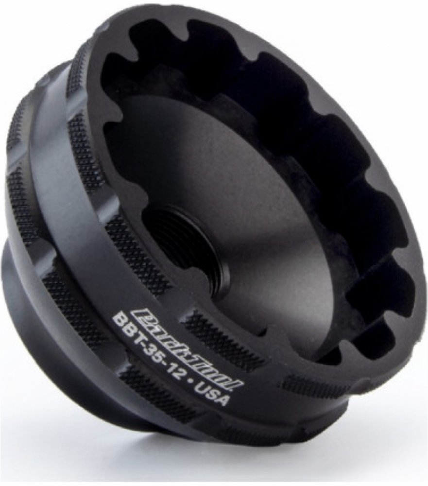 Stahovák Park Tool vyrobený ze slitiny hliníku technologií CNC ve vlastní továrně, povrch eloxován. Kompatibilní s miskami středových složení s 12 vnějšími drážkami (vnější průměr 48-50 mm, vnitřní průměr 46,2 mm). Praxis Works M30 apod. Zakončený vnitřním 4HR 3/8".