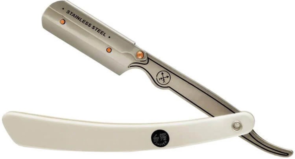 Holicí strojek typu shavetta od Parker. Je podobný břitvě, ale s tím rozdílem, že je na klasické výměnné čepelky a tak se nemusíte starat o obtahování nebo broušení. Shavetta je vhodná jak do holičství, tak i pro ty, kteří si netroufají na břitvu. Čepel je z nerezové oceli s odnímatelným ramenem a příjemně tvarovanou bílou plastovou rukojetí. Shavetta je opatřena nerezovým držákem pro snadnou výměnu čepelky.