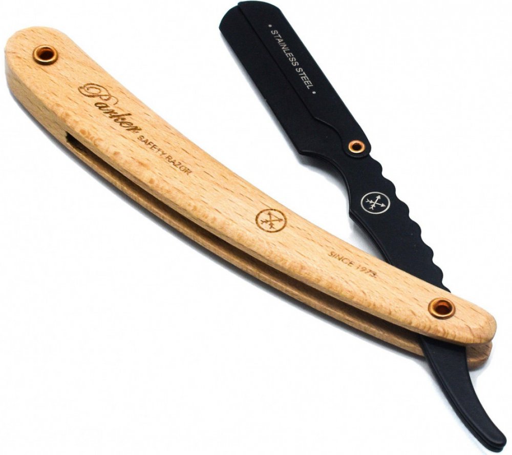 Holicí strojek typu shavetta od Parker. Je podobný břitvě, ale s tím rozdílem, že je na klasické výměnné čepelky a tak se nemusíte starat o obtahování nebo broušení. Shavetta je vhodná jak do holičství, tak i pro ty, kteří si netroufají na břitvu. Čepel je z nerezové oceli s odnímatelným ramenem a má černou povrchovou úpravu. Rukojeť je vyrobená z borovicového dřeva. Součástí balení nejsou žiletky...