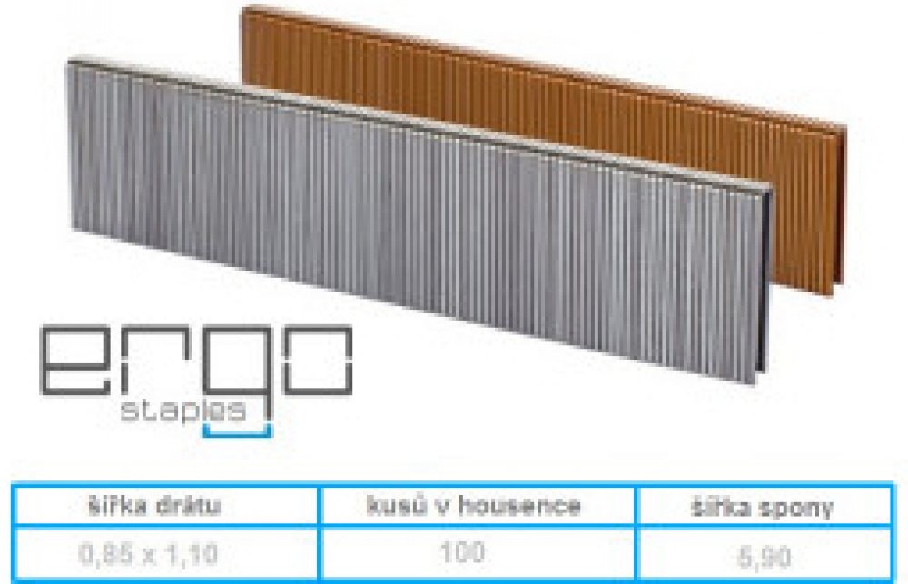 Kompatibilní spony jsou také typ - Rapid 14/606, 343, BeA 99, Bosch 55, Metabo TAE 3030, Novus C, Prebena ES, Parkside typ 55
